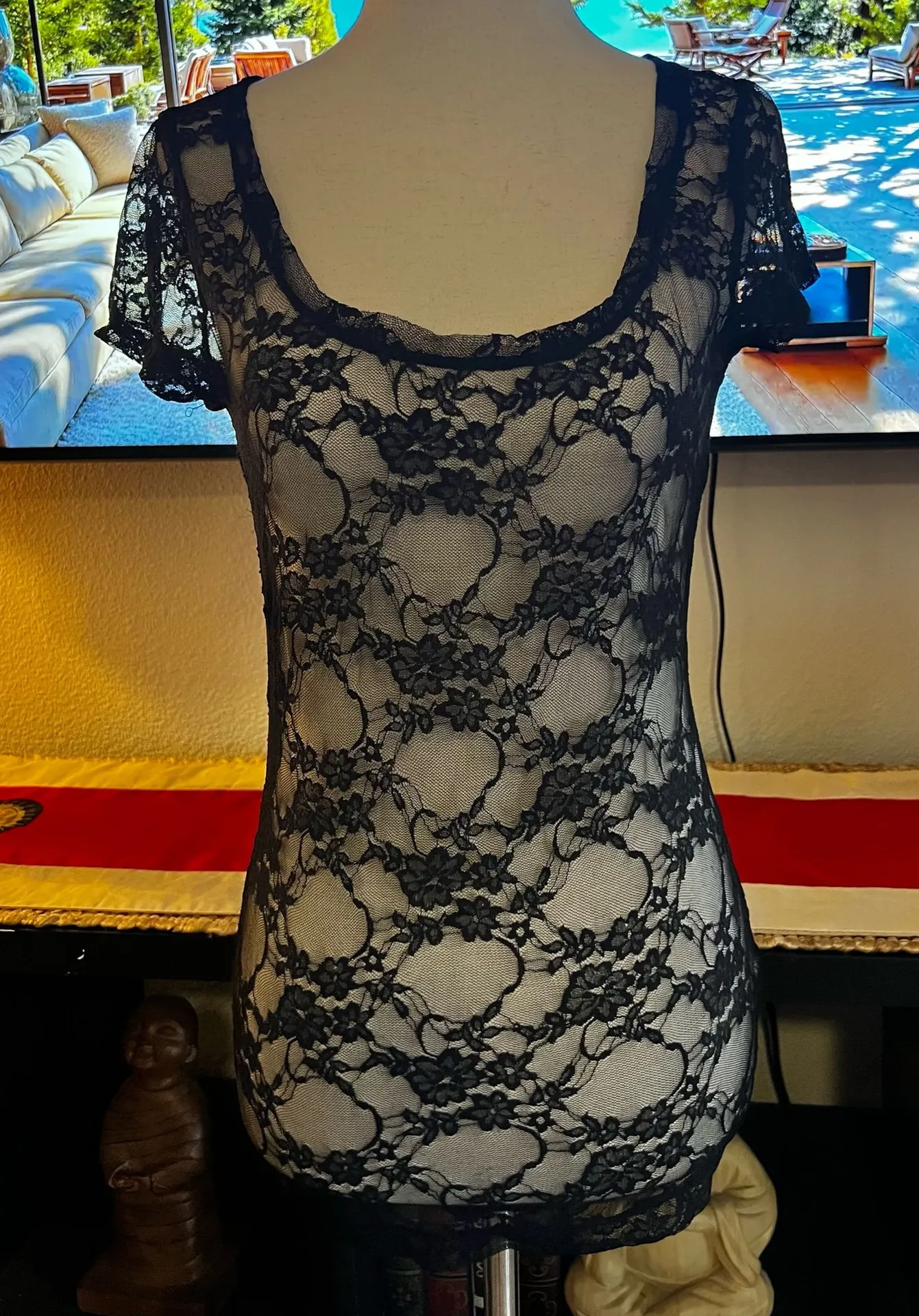 Womens large Zenana Outfitters black lace square neck short sleeve shirt - $15 - From Sarah