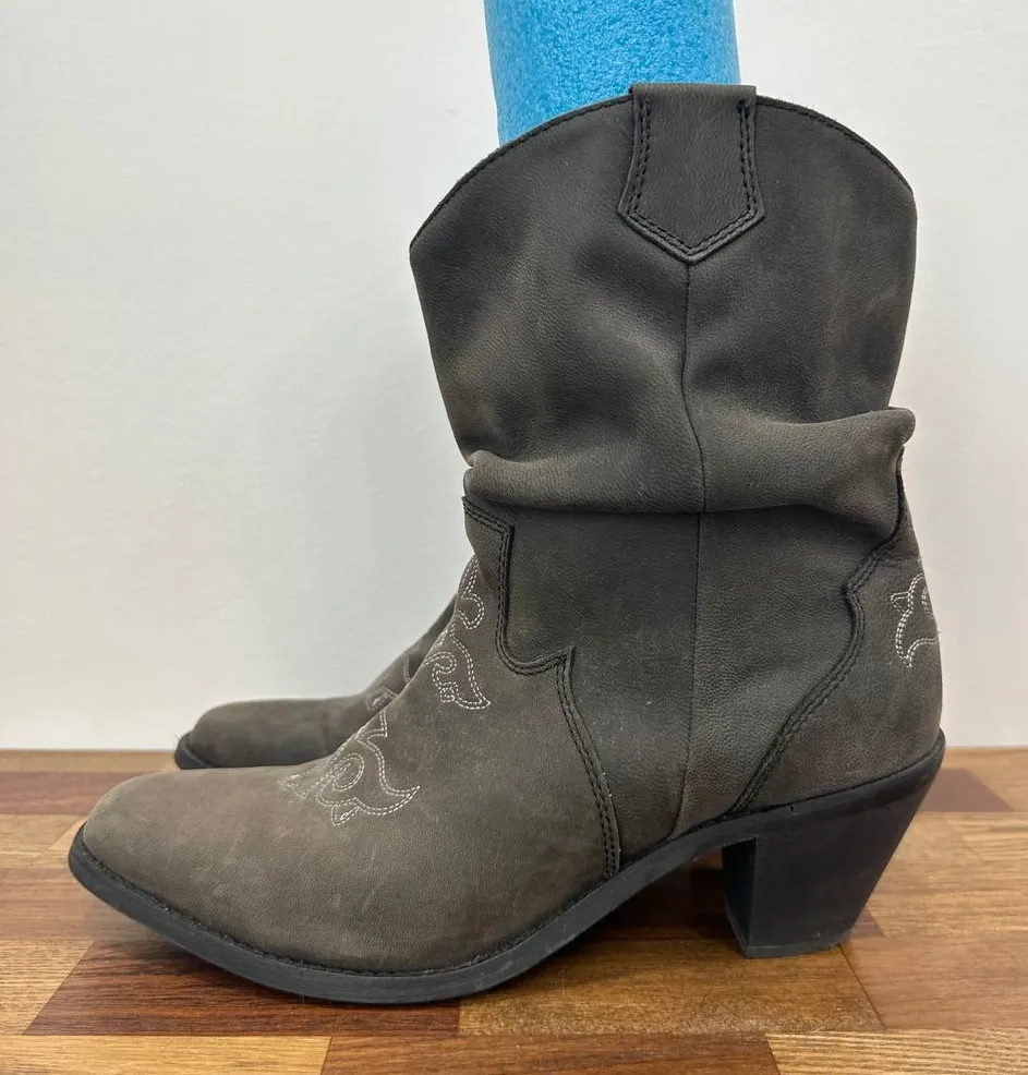 Womens Leather Cowboy Boots 10 Gray Slouchy Heeled Draped Rodeo Western Ankle Weight: 2.7lb Size o... Show more