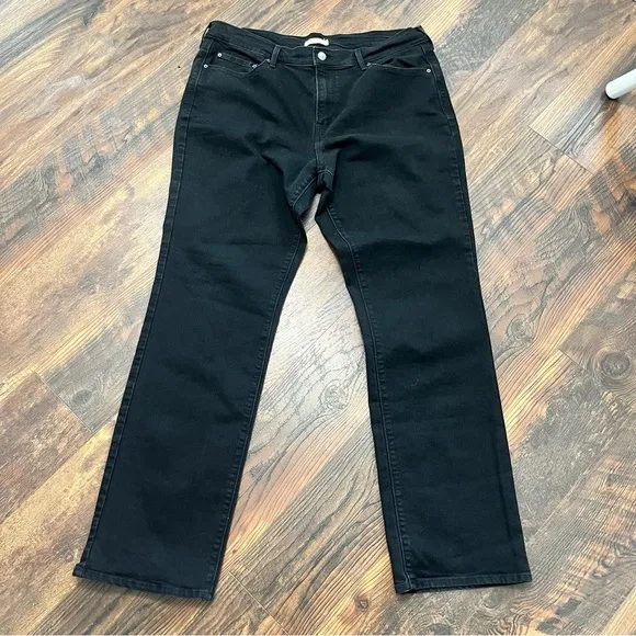 Elevate your denim game with these Women's Levi's 505 Mid Rise Straight Leg Stretch Black Jeans. Cra... Show more