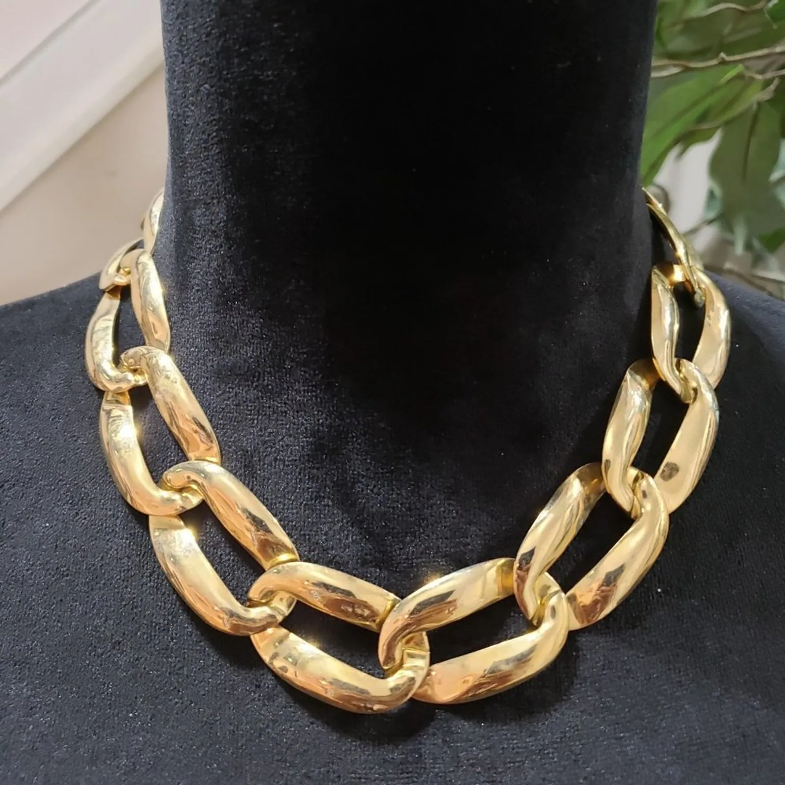 Womens Lightweight Fashions Gold Plated Thick Cuban Link Chain Style Choker Collar Necklace. Color: Gold Type: Necklace Department: Women's Occasion: Partywear, Anniversary, Birthday, Christening, Christmas, Engagement, Graduation, Mother's Day, Valentine's Day, Wedding Disclaimer: Please be aware that vintage/estate jewelry items may show signs of wear and age due to their historical nature. Any imperfections or variations in appearance should be considered part of their charm and uniqueness. It's recommended to carefully examine the item's condition and ask for detailed information before making a purchase decision.
