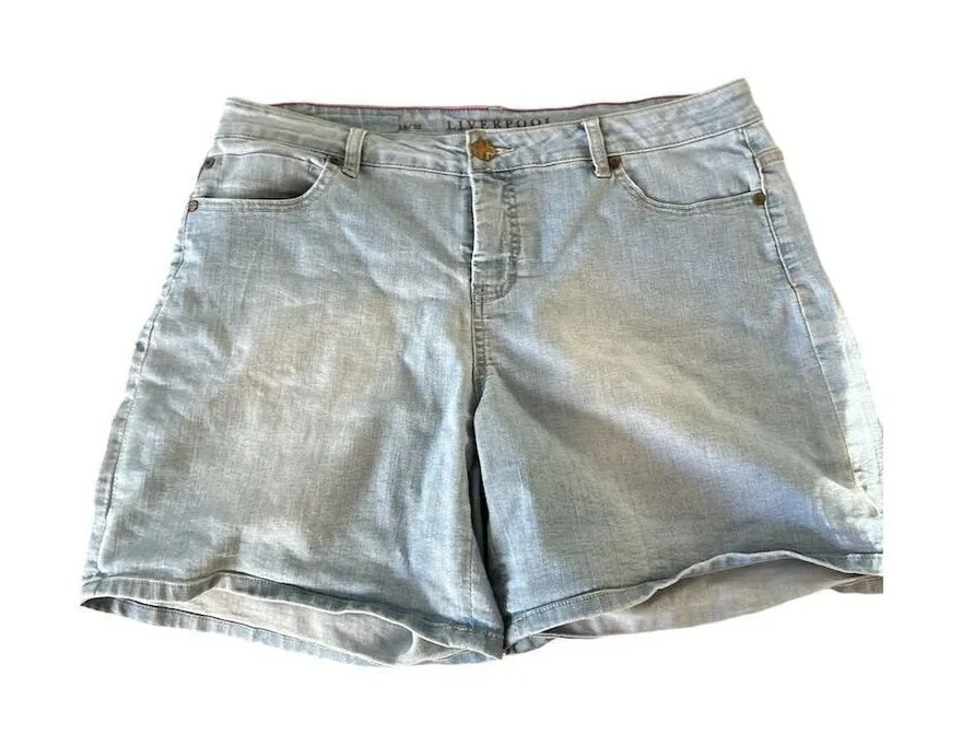 This casual women's denim piece in a medium size features a relaxed fit and a light fabric wash. It... Show more