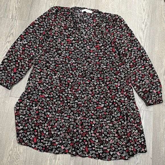 Women’s Loft Small Black Heart Long Sleeve Top Shirt