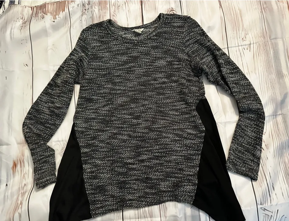This pre-owned Lucky Brand women's long-sleeve top, size M, features a black and white marled knit u... Show more