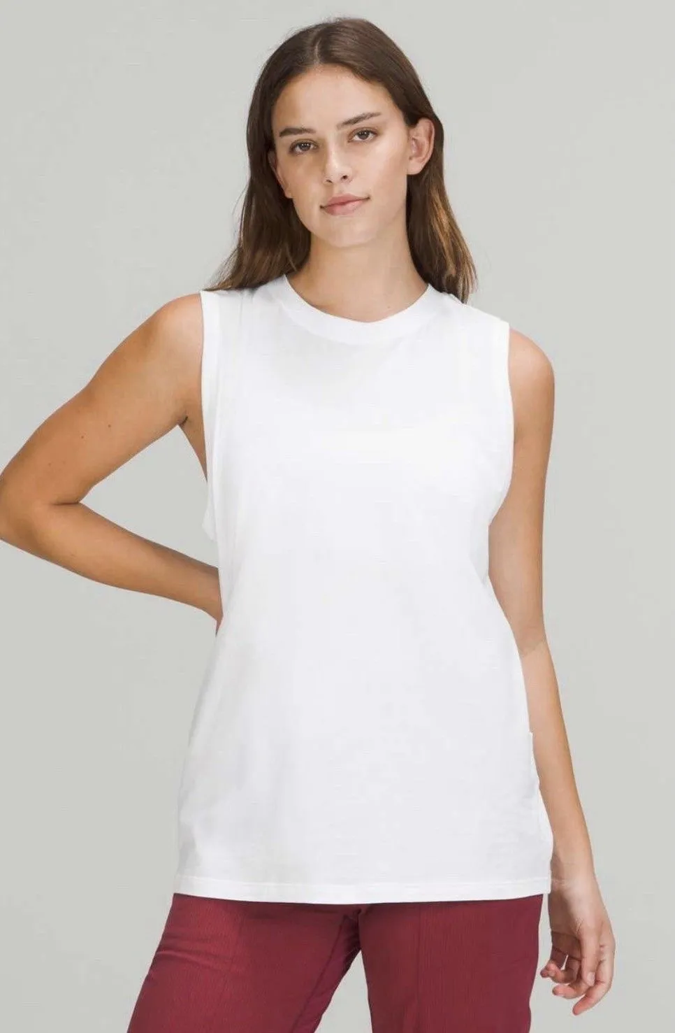 The Womens Lululemon All Yours Organic Tank in white is a versatile and comfortable activewear top p... Show more
