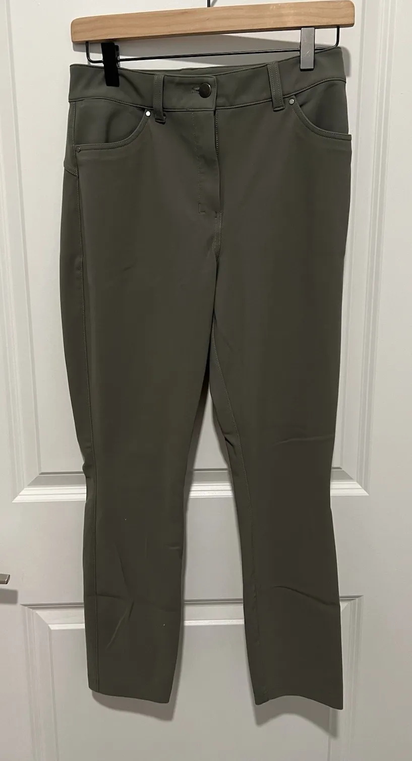 The Women's Lululemon City Sleek Slim-Fit 5 Pocket High-Rise Pant in Grey Sage, Size 28 is a stylish... Show more