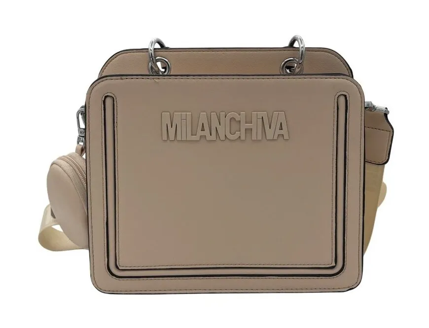 This stunning Milan Chiva bag is a gorgeous tan color and made from a sturdy leather material. It has a detachable crossbody strap and coin purse. It has multiple compartments for maximum use. It does have very small scuffs on the back of bag pictured in photo six. Measurements: Length 7 1/2" Depth 7" Width 9" Strap Lengths 5" & 16" Condition: Pre-Owned Good