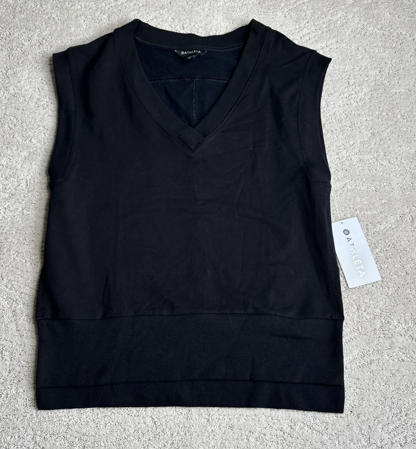 Women's NEW Athleta XS Retroterry V-Neck Sweatshirt‎ Tee Sleeveless Sweater Black Size 0 - $28 New With Tags - From shiann