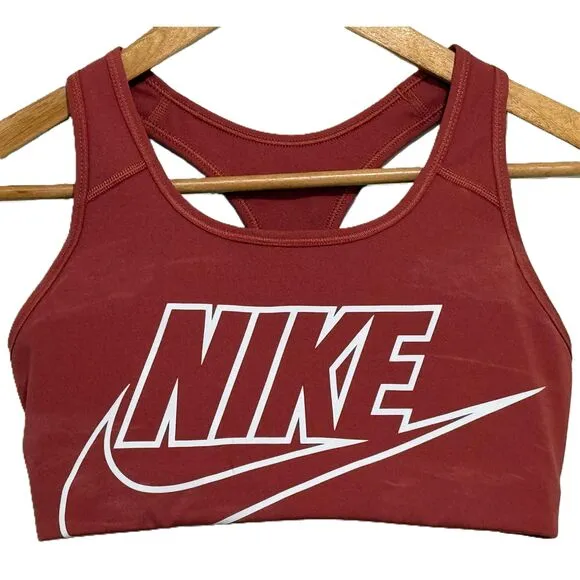 This Nike sports bra offers a perfect blend of comfort and style, featuring a racerback design and striking coral color combination. Made with a high-quality polyester and spandex blend, it's designed to support any activity with ease. Ideal for sports or casual wear, it provides breathable comfort and showcases the iconic Nike logo.