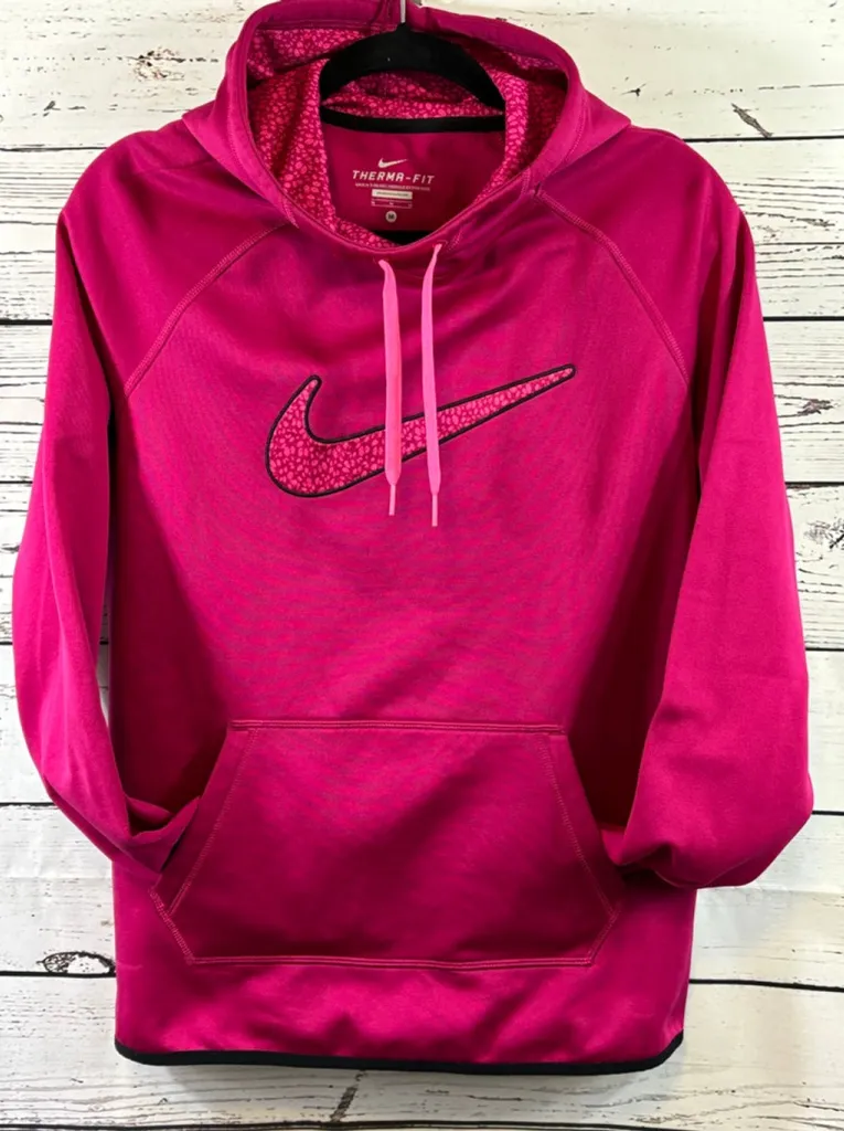 This is a pre-owned women's Nike Therma-FIT hoodie in a vibrant pink color, size M. The hoodie featu... Show more
