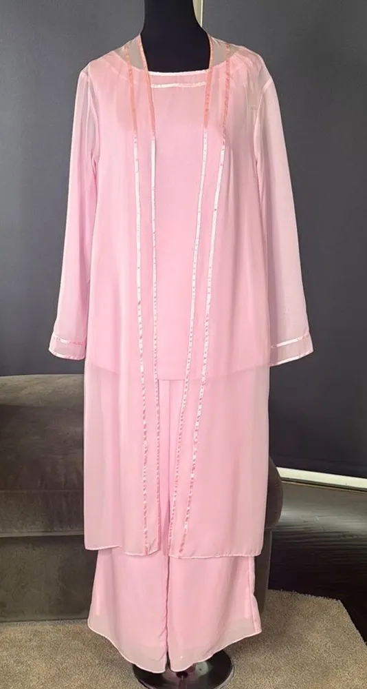 Women’s Pink Chiffon 3 Piece Pants Suit Beautiful Pant Suit for all Formal Occasions - Mother of the... Show more