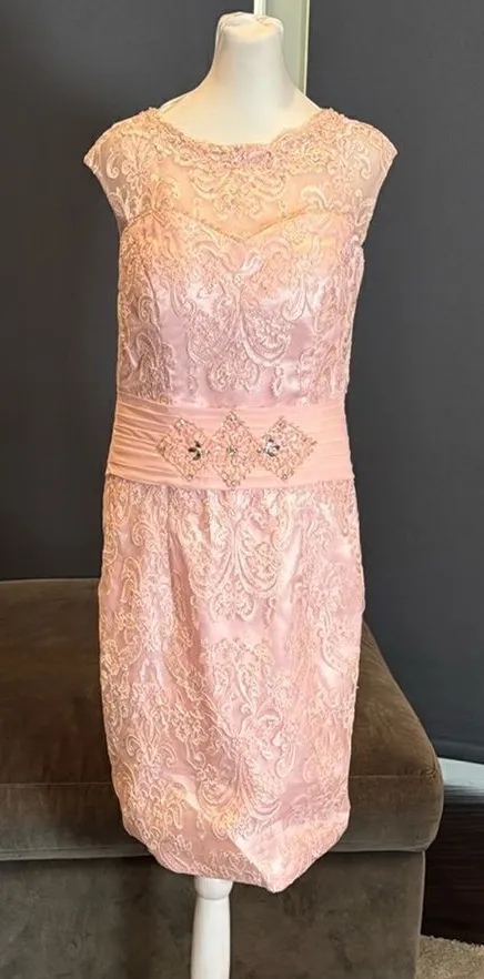 Women’s Pink Tea Length Dress with a Corset Back and gorgeous beading detail Beautiful Dress for all Formal Occasions - Mother of the Bride, Mother of the Groom, Party, Birthday, Celebration, Wedding Guest, Bridesmaid or Special Event! Tag Measurements: Bust 94cm (37”) Waist 84cm (33.1”) Hips 102cm (40.2”) These measurements equate to approximately a size 10. Please check to make sure this will fit you. The back is corset style which allows some room for size fluctuation/adjustment. The back panel is wide (see picture) and ties long so room to go a bit wider than I have it laced. Dress is a little wrinkled from storage NWOT *Please note my camera washes out the color on close up pictures. Color is more accurate in further away pictures of the dress on the dress form *Color is subjective and may vary based on lighting and device used to view this item 1487B175