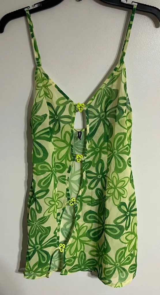 Women’s Pretty Little Thing Green Floral Mesh Sheet Mini Dress Cover Up Size 6 Pit to pit measures 1... Show more