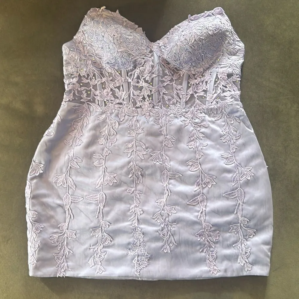 Women’s Purple Short Dress with Beading, Sheer Bodice and Corset Back Ties Great for Cocktail, Party... Show more