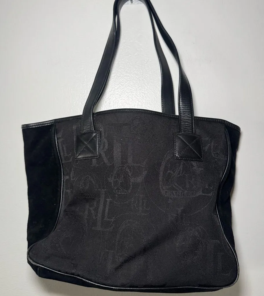 Women's Ralph Lauren Graphic Leather & Canvas Tote Designer Bag Black