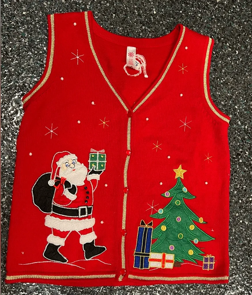 Women's Red Ugly Christmas Sweater Vest With Santa & Christmas Tree Small (4-6) - $27 - From Michelle