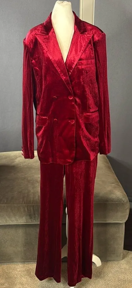 Women’s Red Velvet Double Breasted Pantsuit with Peak Lapel Great Suit Set for all Occasions - Daily Business Wear, Prom, Party, Wedding, Formal or Special Events! Size L - please see pictures for approximate lay flat measurements and to make sure this will fit This elegant red velvet pantsuit offers a sophisticated look for any occasion. NWOT *Color is subjective and may vary based on lighting and device used to view this item 2376B65