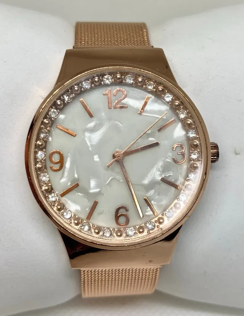 Women’s rose gold tone watch 35mm round case quartz analog mesh band running - $15 - From Watch