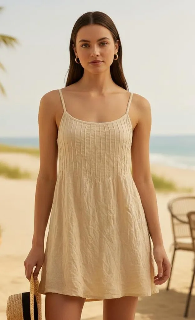 Elevate your wardrobe with the Women's Rowie Beige Ribbed Knit Mini Dress S, designed for effortless... Show more