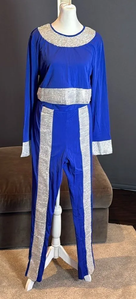 Women’s Bodycon Blue & Silver Studded Crop Top & Pencil Pants Size XL - please see pictures for approximate lay flat measurements. The material is stretchy so goes larger, the set is supposed to be body conforming. The waist band on the pants is elasticized. The back of the pants is plain blue no studding, studded silver stripe only on the front f the pants. NWOT *Color is subjective and may vary based on lighting and device used to view this item 1332B178