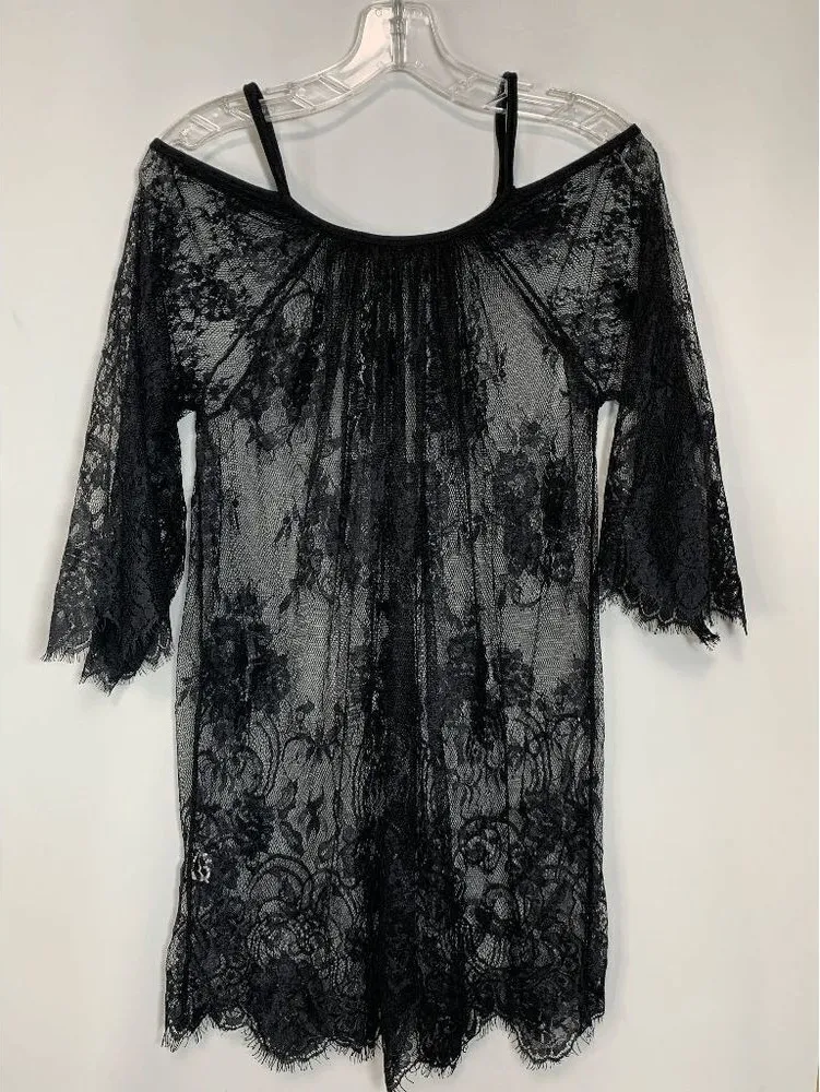 Women's Sheer Lace Off Shoulder Beach Swimsuit Cover Up Black Size M/L The Women's Sheer Lace Off Shoulder Lace Beach Swimsuit Cover Up in Black is a flirty and feminine choice for a beach or pool day. The sheer mesh fabric and off-shoulder design show off just the right amount of skin, while the lace details add a touch of elegance. The versatile black color pairs well with any swimsuit and is easy to accessorize for a complete summer look. Department: Women's Type: Swim Cover Up Style: Dress Color: Black Size: M/L Material: Polyester Condition: Excellent NWOT condition Please see pictures for all details. 21" pit to pit 25" length no brand size M/L