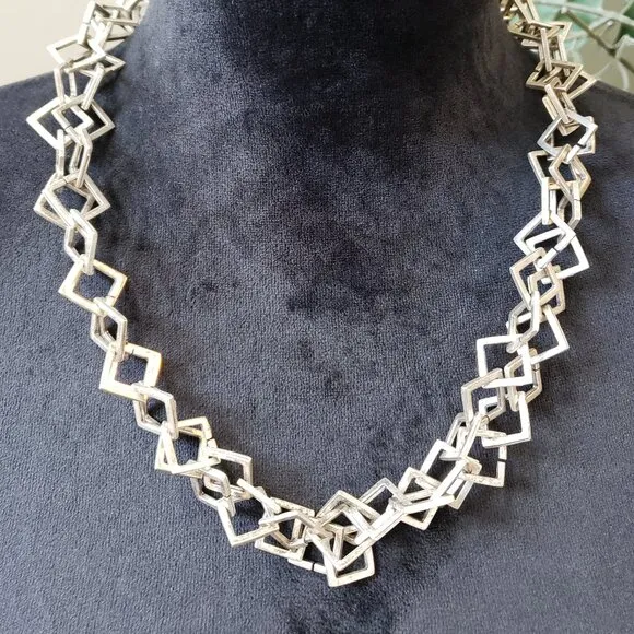 Womens Silver Tone Textured Squares Link Long 2 Strand Necklace w/ Lobster Clasp - $28 - From Carissa
