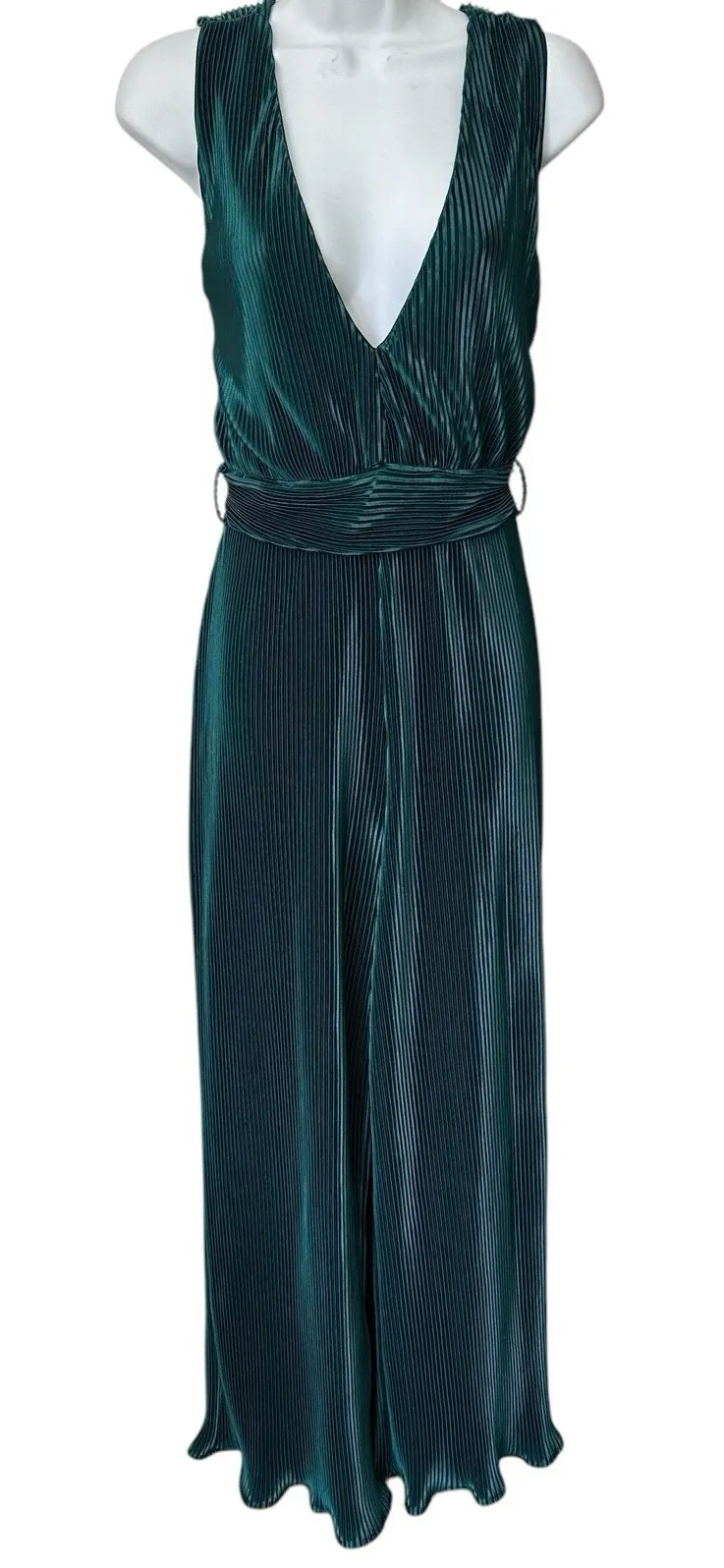 Women's Jumper Jumpsuit A New Day Green Tie Back Sash Size medium Wide lettuce trim legs Measurem... Show more