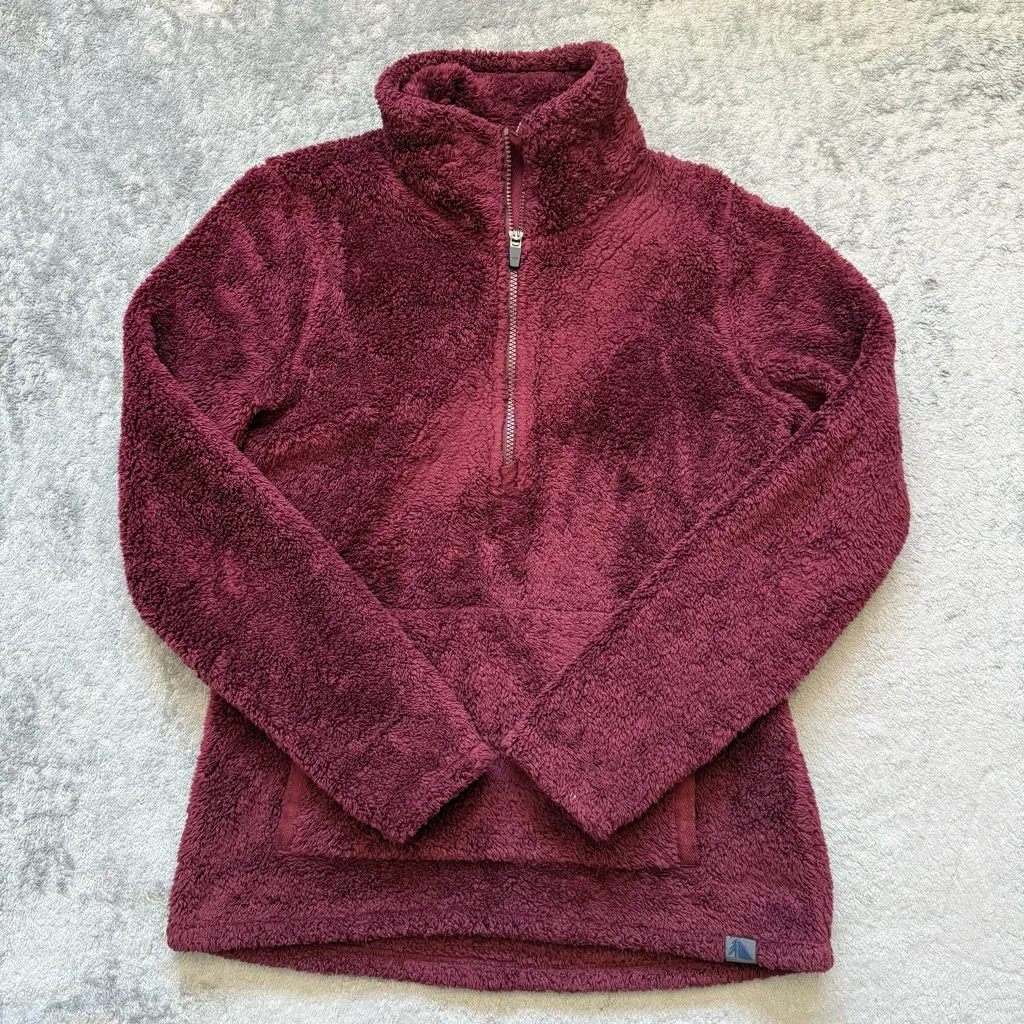 Women’s Small LL Bean High Pile 1/4 Zip Fleece Burgundy Kangaroo Pockets Red - $32 - From Joy