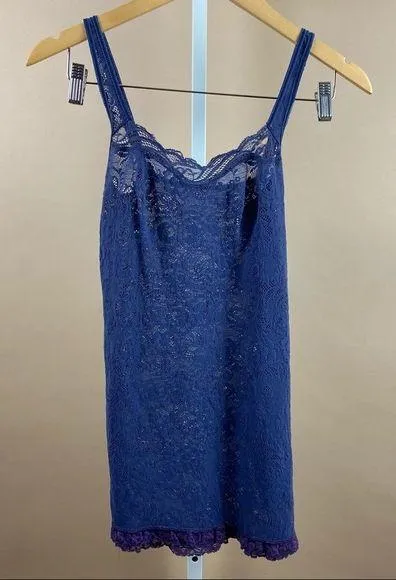 Women’s Small Vintage Warner's Lace Tank Top Y2K Lingerie Navy Ruffle Roses Blue - $10 - From Amanda