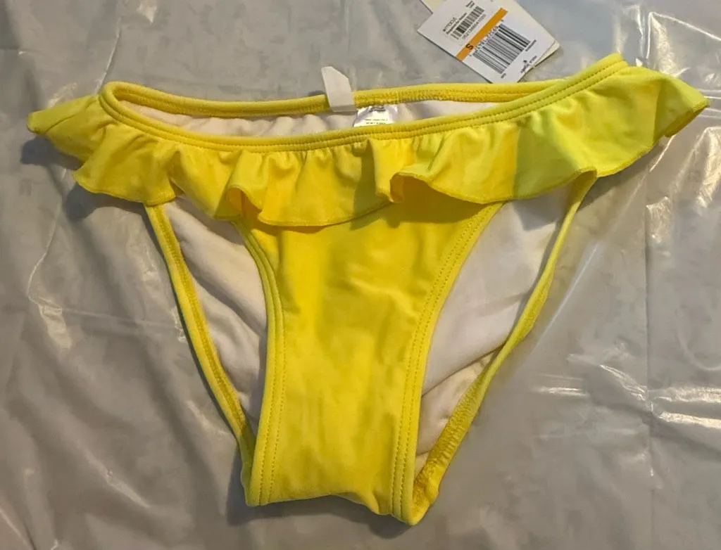 Women’s Small Yellow Hula Honey Ruffled Bikini Swim Bottom NWT Size M - $6 New With Tags - From Xavier