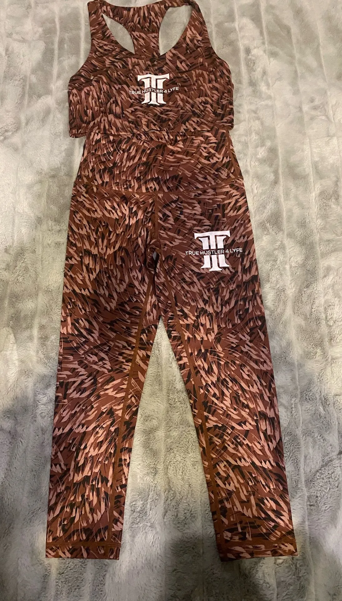 The Zella Coffee Print Women's Size Small 2 Piece Activewear Set includes a top and leggings made of... Show more