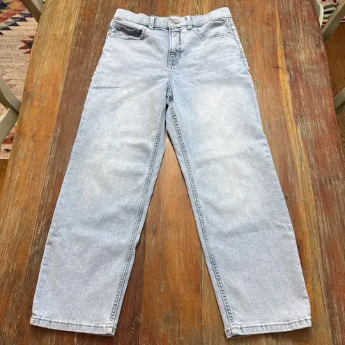 pre-owned women's SPANX wide-leg jeans in a light blue wash, size 12. Gently worn