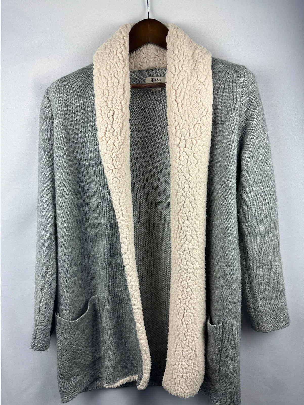 Women’s Style & Co Gray Sherpa Lined Open Front Cardigan Size Sm - $38 - From Kristina