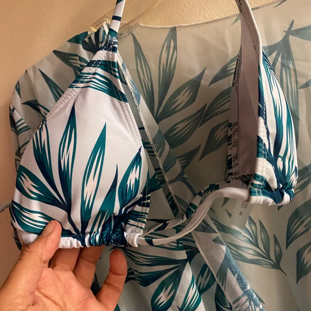 Womens Swim Swimsuit Bikini Top Only & Cover Up Sheer Top Green Leaves Print M Size M - $5 - From Terri