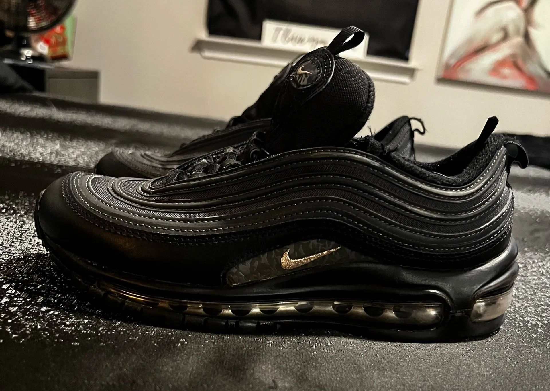 Womens sz7.5 Nike Air Max 97 Black Metallic Pewter tennis shoes. Great condition. No holes tears or... Show more