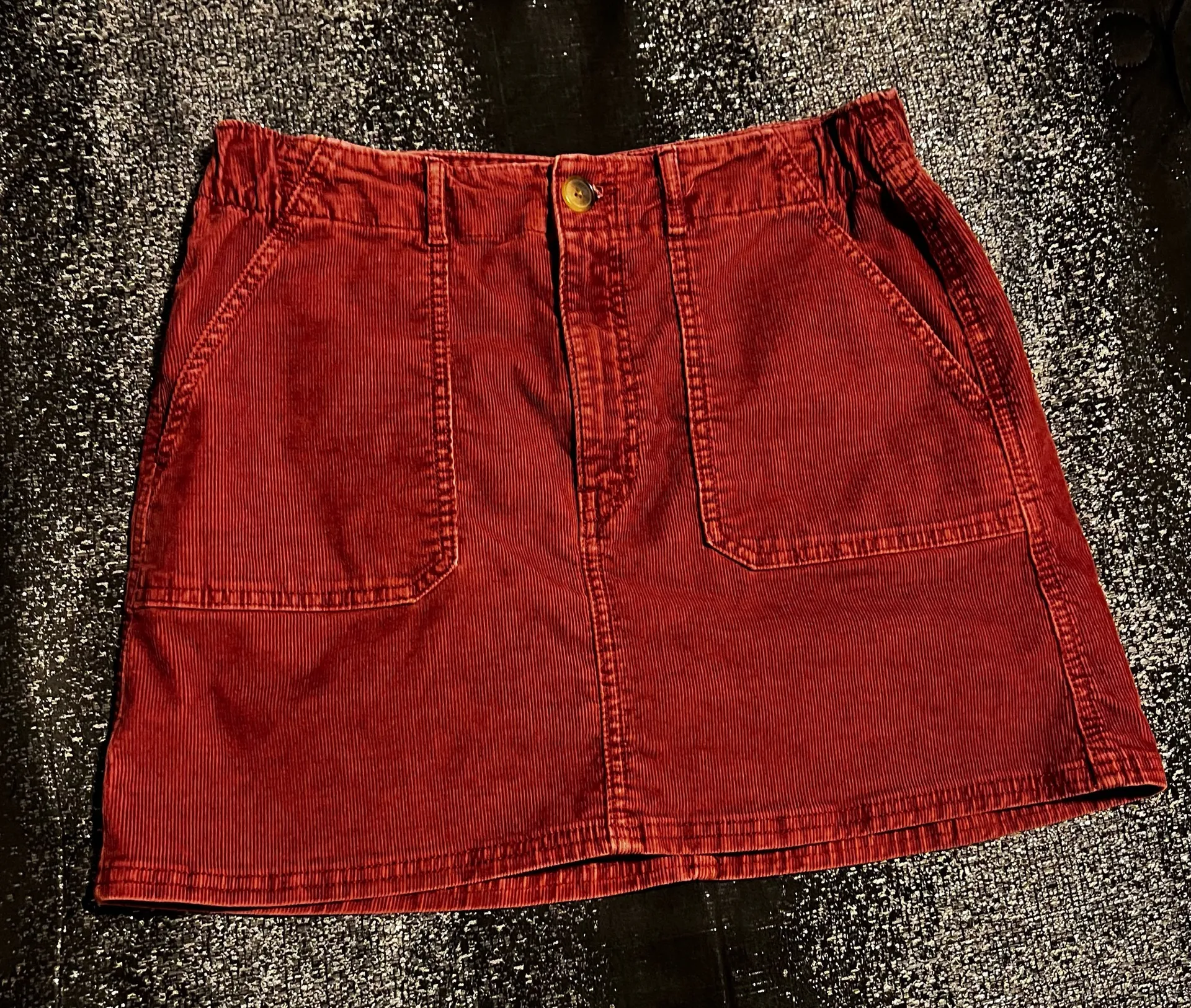Womens sz8 American Eagle super stretch burgundy corduroy mini skirt. Soooo cute!!! Great condition.... Show more