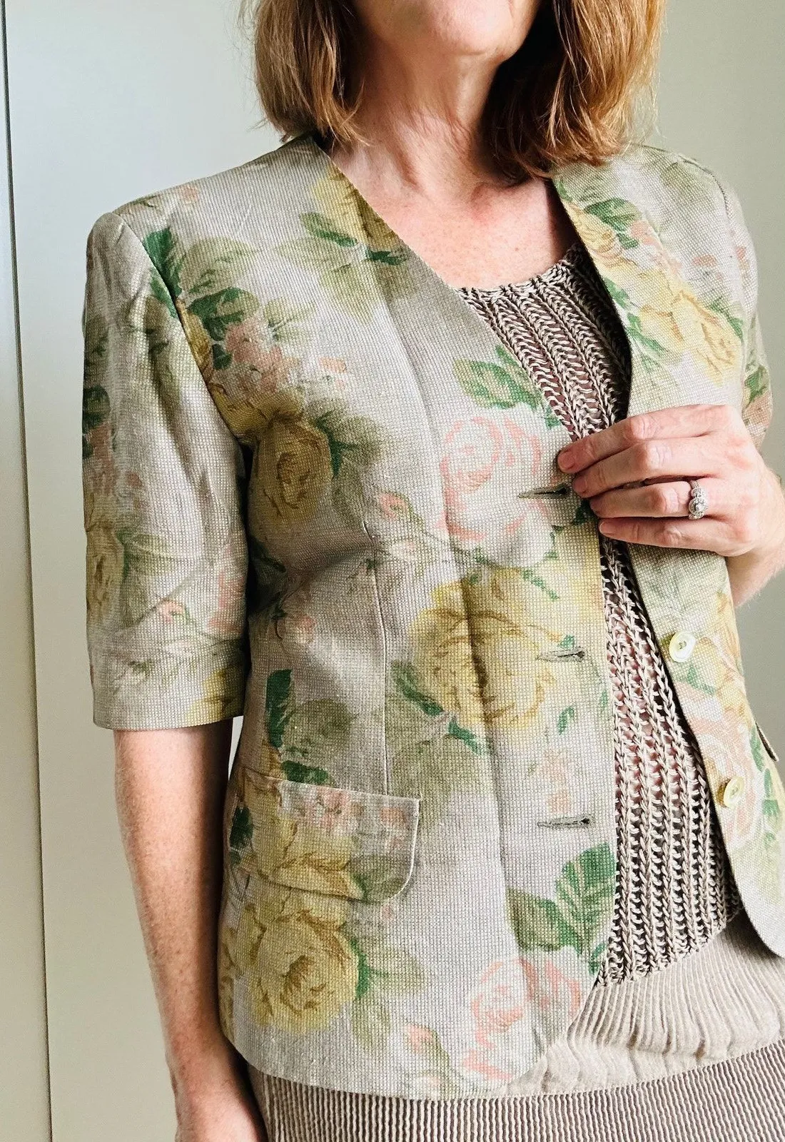 Vintage 80s Floral Print Blazer/Jacket Size M/8 Greens/Tans Cottagcore Tailored Pre-owned Fully LI... Show more