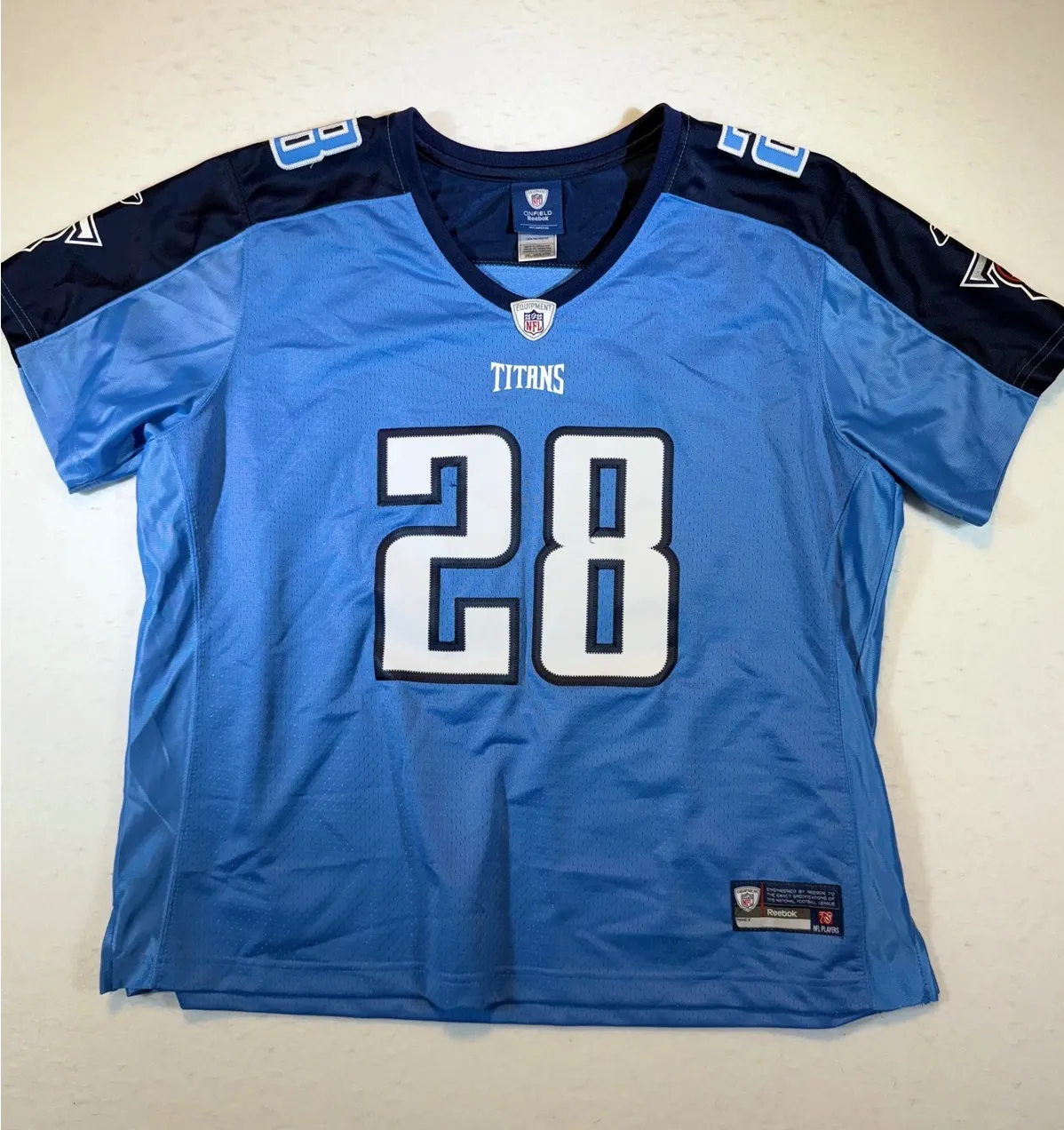 A Women's Tennessee Titans Chris Johnson number 28 football jersey by Reebok. This officially licens... Show more