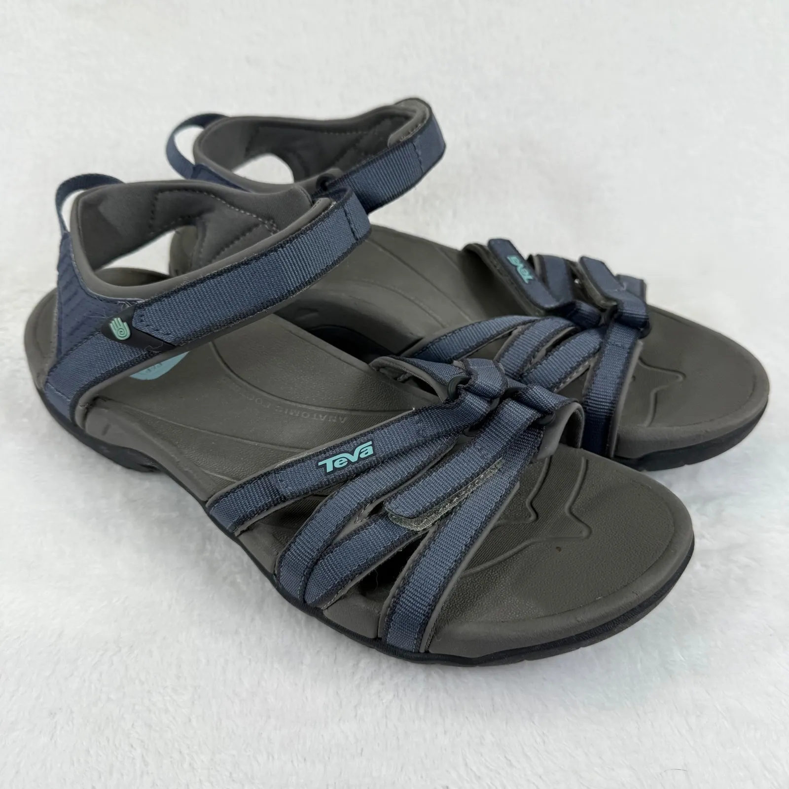 Style: Strappy Department: Women Upper Material: Nylon Heel Style: Flat Features: Adjustable Strap, Comfort, Padded Closure: Hook & Loop Pattern: Solid Accents: Logo Heel Height: Flat (Under 1 in) Type: Sandal Keywords: Teva sandals, women's sandals, hiking sandals, athletic sandals, outdoor sandals, strappy sandals, blue sandals, comfort sandals, walking sandals, travel sandals, ladies sandals, summer sandals, casual sandals, adjustable sandals Thank you for viewing my listing! Please see the photos for a detailed look at its CONDITION