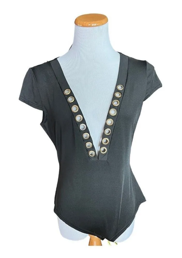 Womens Texas Girl Boutique Black with Gold Grommet Deep Plunge Bodysuit- Sz XL - $13 - From Amber