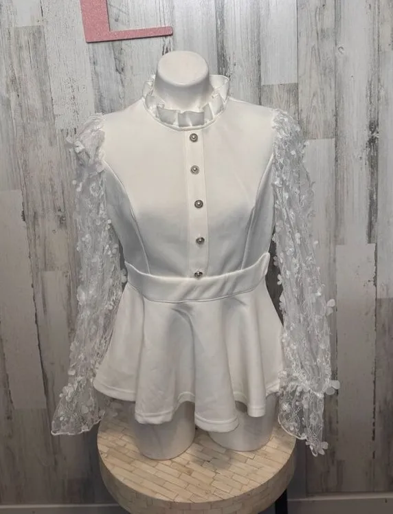 Womens Tops Floral Applique Ruffle Hem Frill Trim Top White Size L - $10 New With Tags - From Cindy