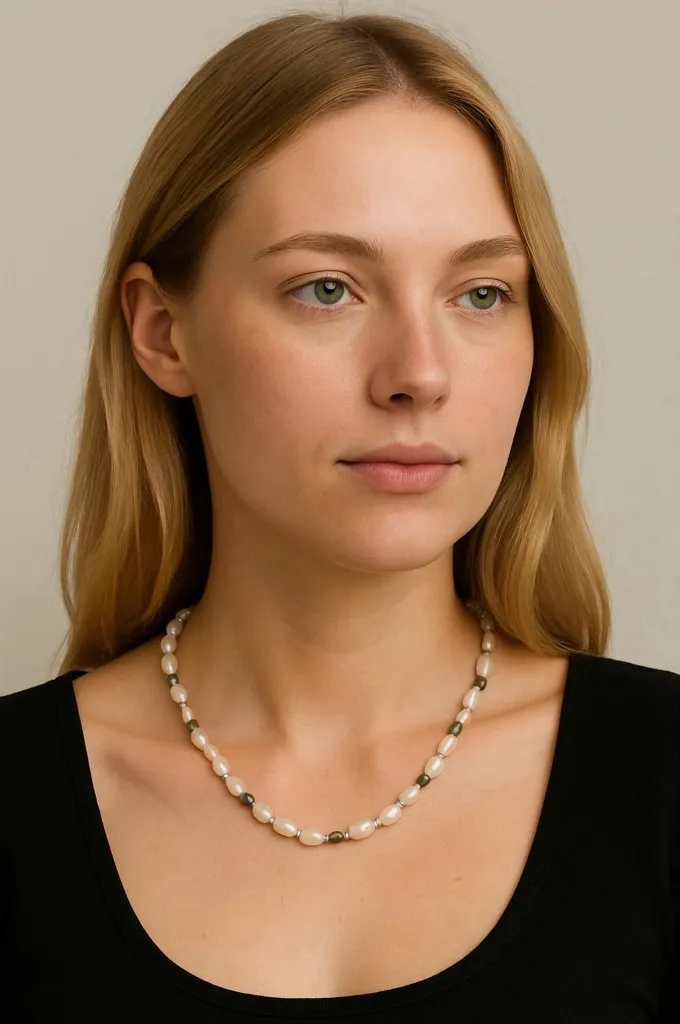 Elevate your style with our stunning Women's Unbranded White Pearl & Dark Green Bead Necklace. This... Show more