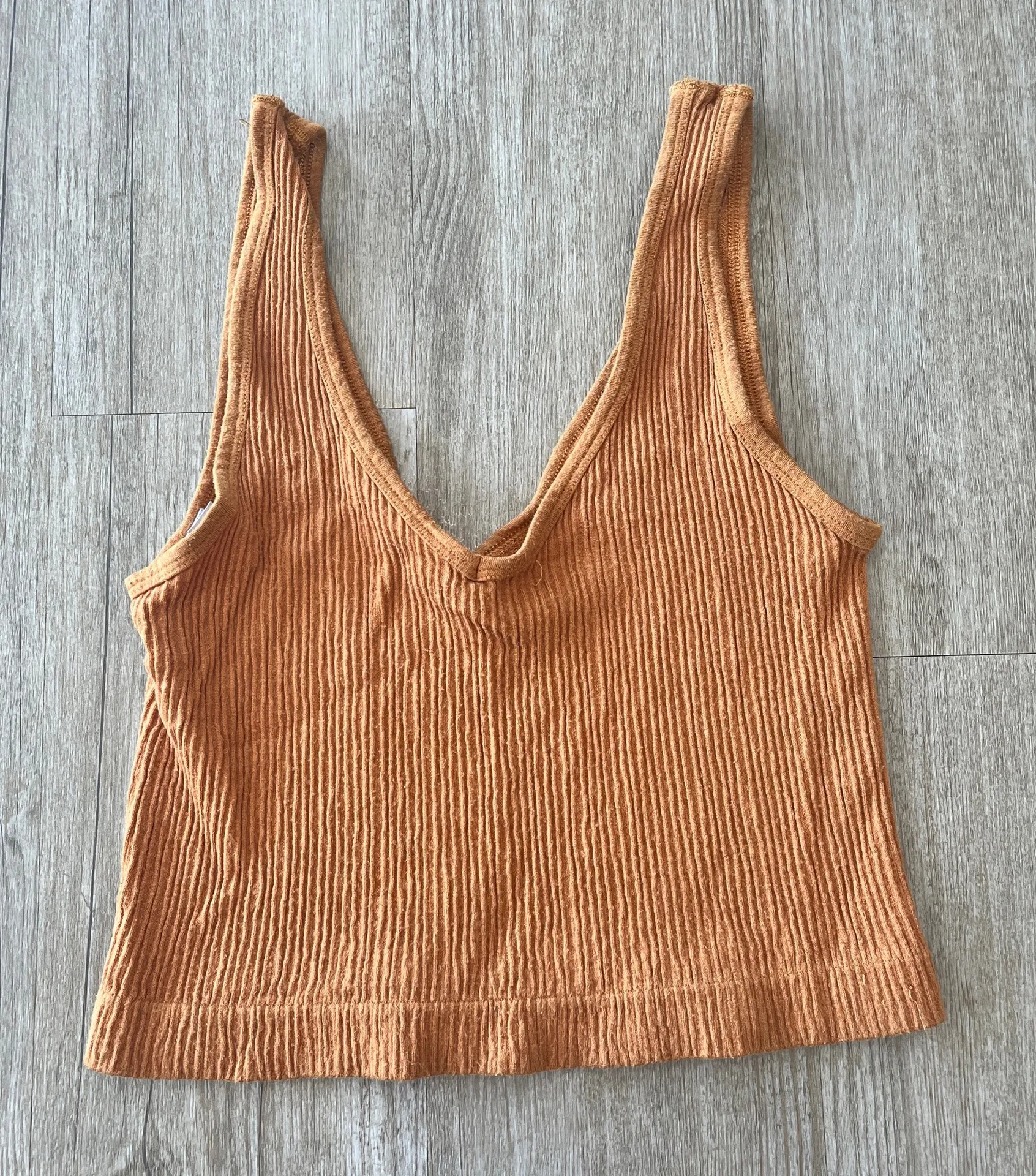 Womens size XL Urban Outfitters - Out From Under Orange cropped ribbed tank top V-neck front and ba... Show more