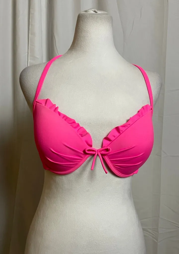 Elevate your beach style with the Women's Victoria's Secret Hot Pink Ruffle Bikini Top in size 34D.... Show more