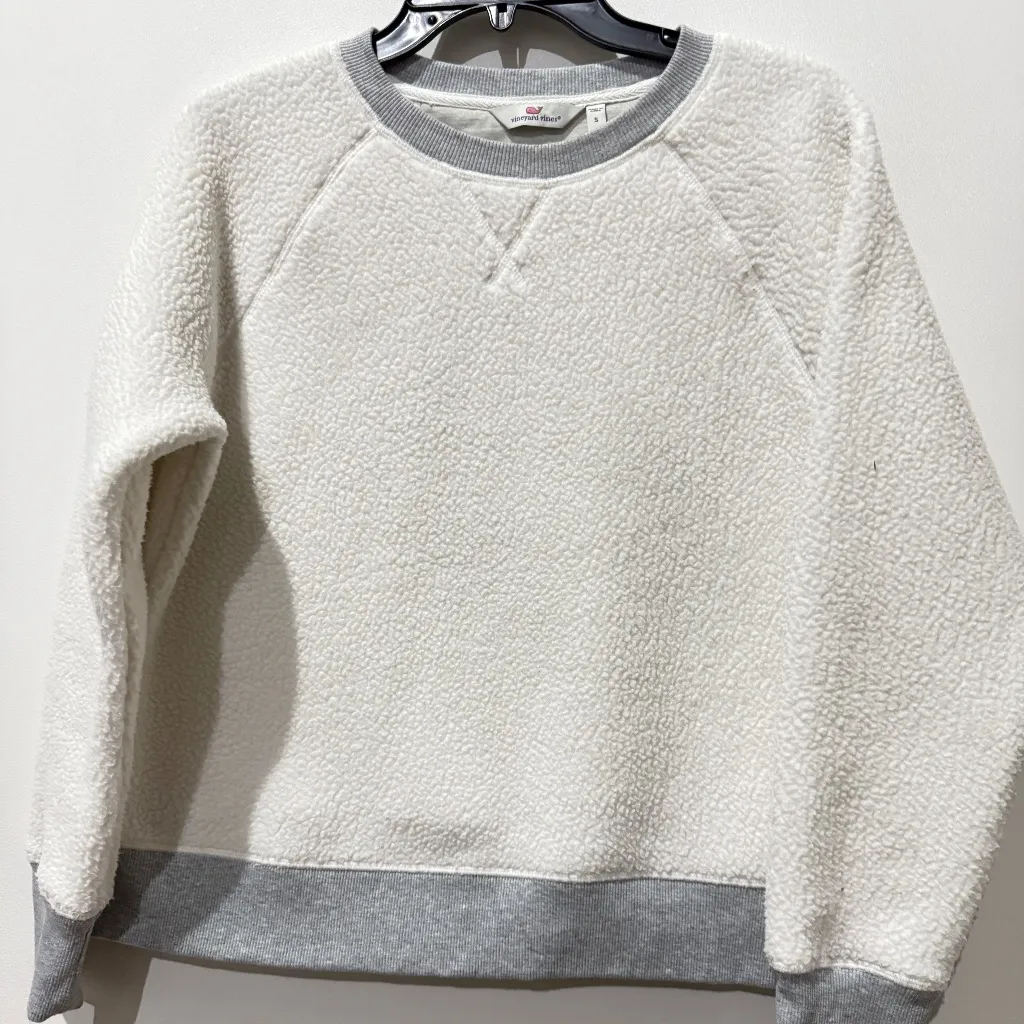 Vineyard Vines Gray and Cream Marshmallow Fleece Crewneck Pullover Top Sweatshirt. Size small. retai... Show more
