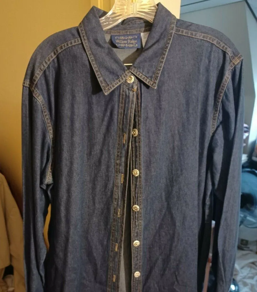 Womens Vintage Willow Ridge L Cotton Denim Top Ribbon Trim Tunic Button … Blue Size L - $24 - From Thomas