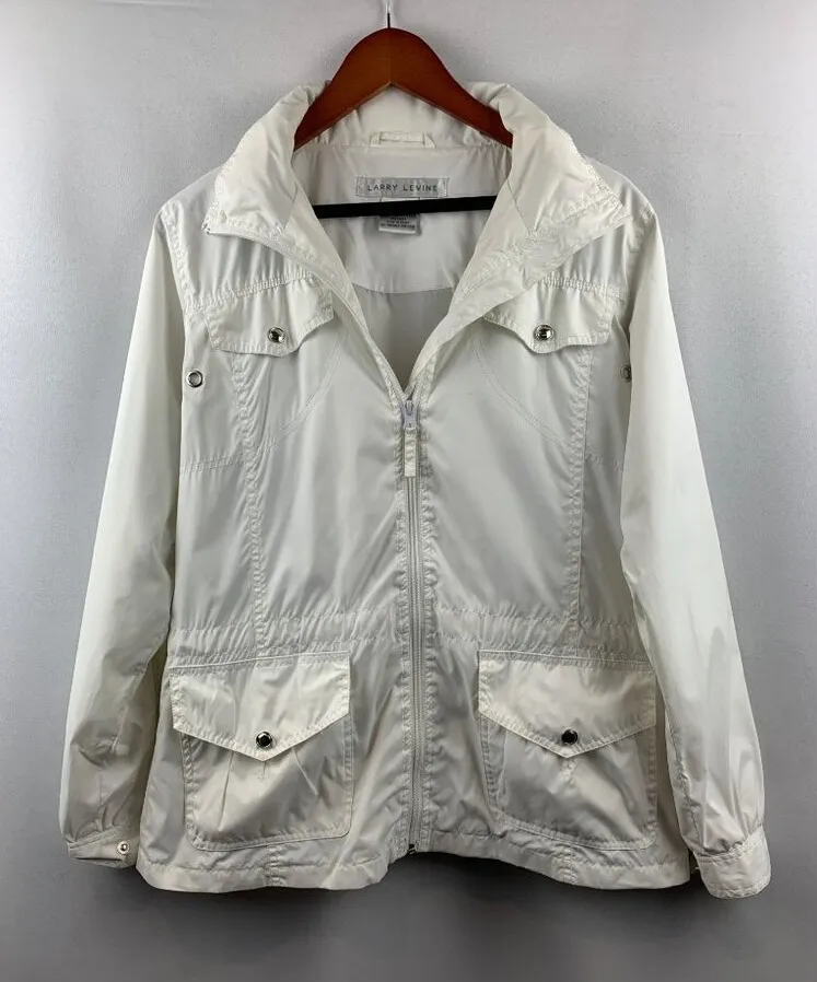 Women's Larry Levine White Wind Breaker Jacket Size XS Material: Polyester Material Thickness: Li... Show more