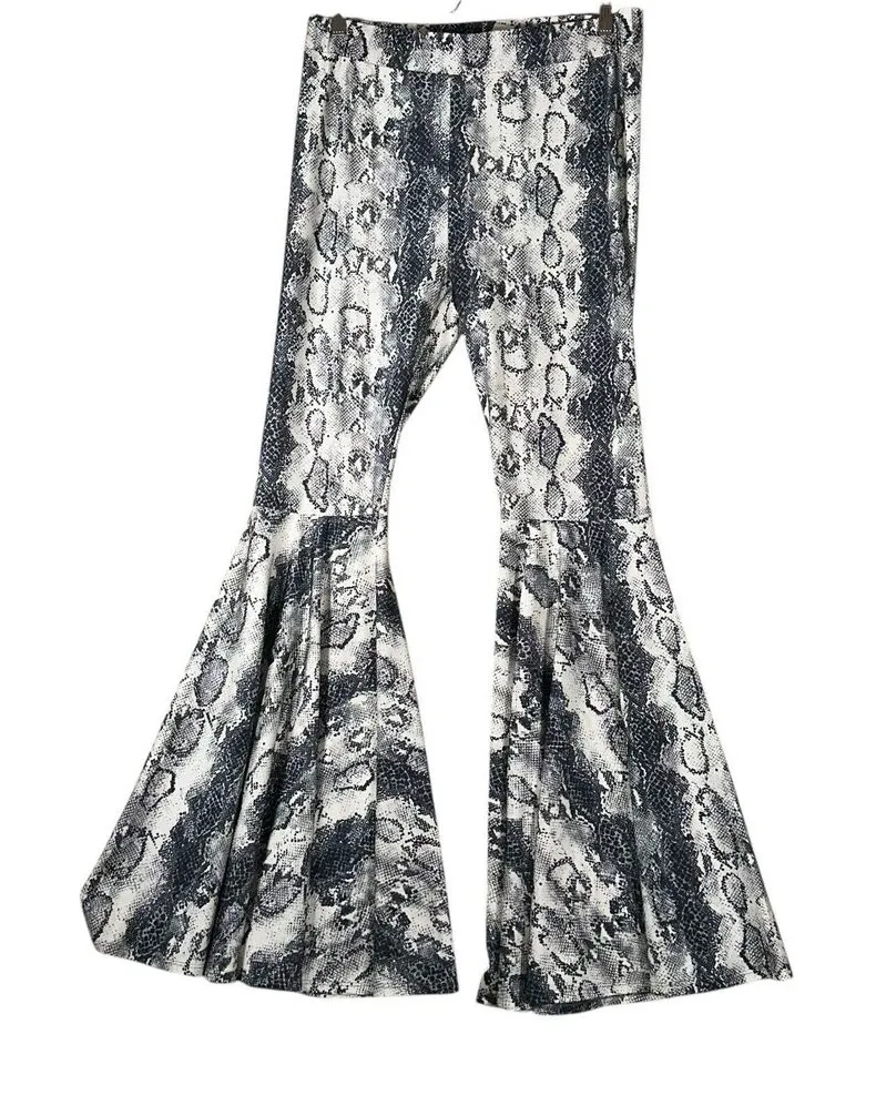Condition: New without tags (see pics for details) Measurements: Waist measures 16 1/2 inches and the length is 33 inches. Size: Womens XL 1X Super Fast Shipping: We ship within one business day. Add some wild west flair to your wardrobe with these stunning black and white snake print leggings pants. The elastic waistband ensures a comfortable fit while the classic flare style and slimming design provide a flattering silhouette. Perfect for any occasion, from casual outings to formal events, these pants are made of a durable and breathable blend of polyester and spandex, making them machine washable for easy care. The inseam measures 33 inches, and the waist size is 16 1/2 inches, suitable for XL size women. The pants feature a pull-on closure and are suitable for all seasons, making them a versatile addition to any wardrobe. The snake print theme adds a touch of edginess to your outfit, making you stand out from the crowd.