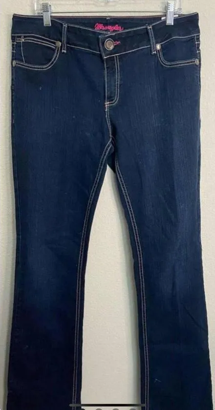 Pink Label Womens Wranglers Boot Cut , Dark Wash Jeans Logo W bk Pockets Western Denim Size 13/1... Show more