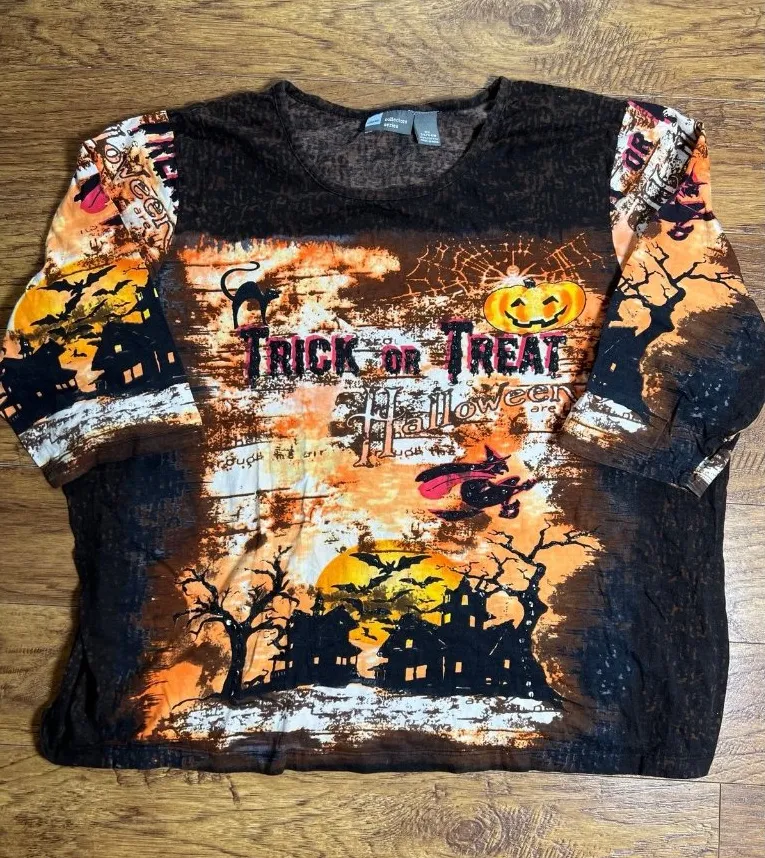 Womens Y2K Trick or Treat Sequin Halloween Shirt Size 2X Witchy Plus Size Black - $27 - From Cheryl
