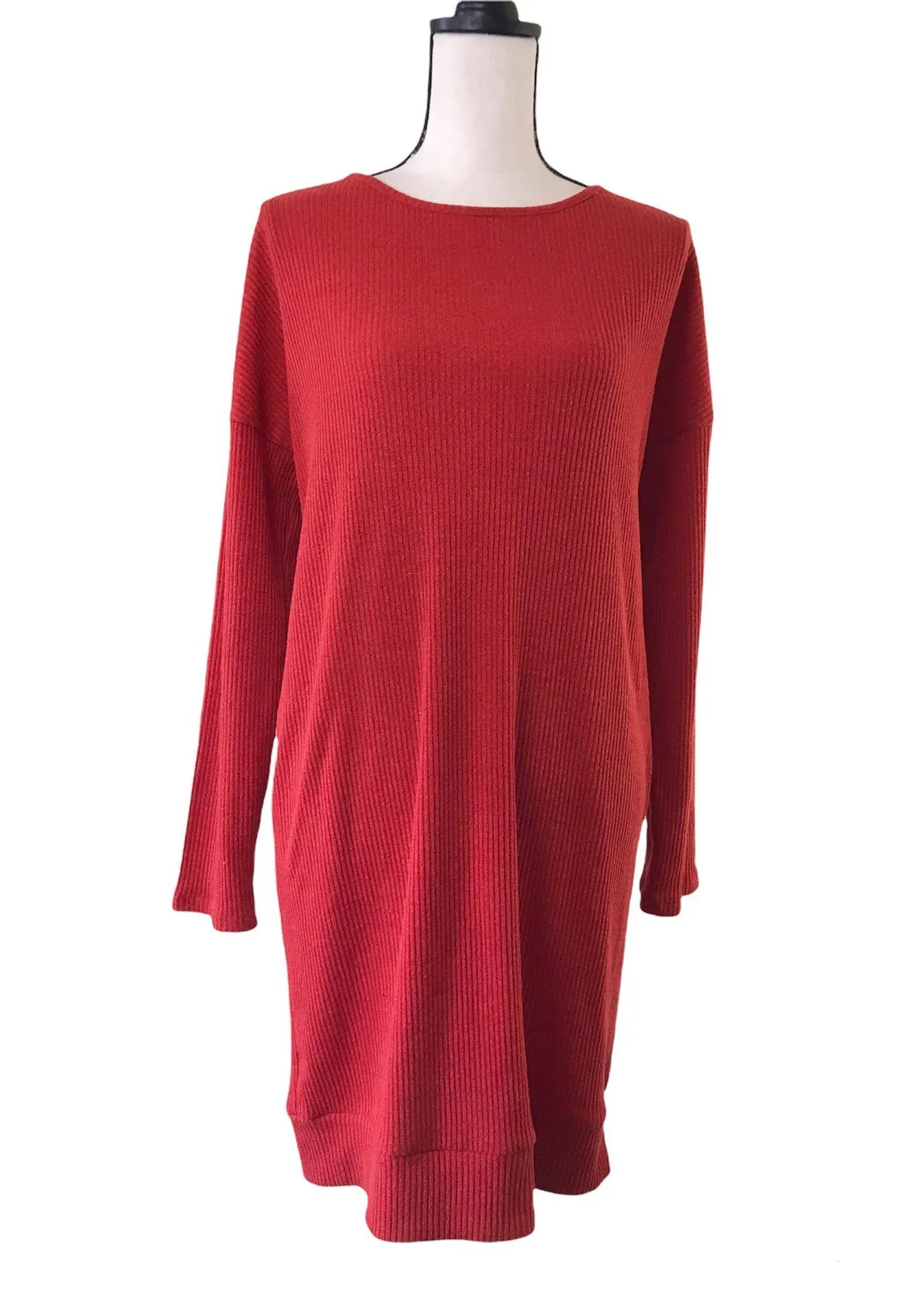 Wonderland By Orange Brick Red Orange Rib Knit Long Sleeve Dress Keyhole Back L Wonderland by Orang... Show more